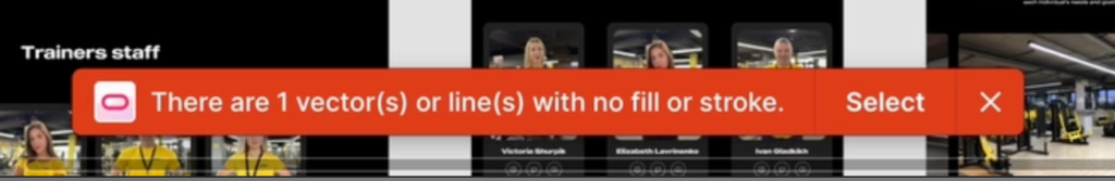 - Figma struggles with exporting completely transparent objects with no storke and no fill at all, even if you would try to export these objects to SVG, an error message will appear.
